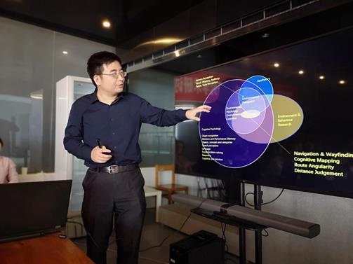 开场第一位嘉宾是来自于同济大学的徐磊青教授,他通过国内外文献的综述研究和剖析,探讨了空间认知和环境行为学研究领域发展规范性理论、奠定学科基石的必要性和迫切性,以及可能实现这一目标的技术路线。同时现场做了有趣的小实验,严谨中带着幽默。徐老师以前沿的学术思考,揭开了本次研讨会的序幕。