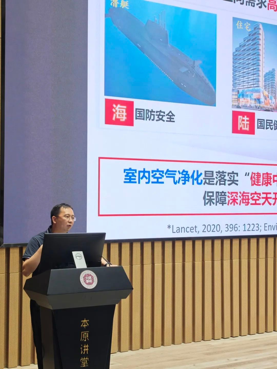 首位特邀嘉宾是深圳大学土木与交通工程学院特聘教授国家自然科学基金杰出青年基金获得者莫金汉教授带来题为《从传质视角实现高效通风过滤》的专题报告。讲座汇报了团队从传质视角研究实现高效通风过滤的方法。从北京和广州等城市室内VOCs对人的暴露及健康风险出发,发现了我国城市中呼吸致癌风险最大的前10种VOCs。在此基础上,发现了VOCs降解有害副产物产生机制,提出了空气净化器健康相关指标,建立了光催化反应器通用模型,揭示了光催化VOCs降解效率影响机理;研究成果应用于我国航天空间站内、船舰内空气净化装置及其性能评价等场景,并可推广至室内场景。