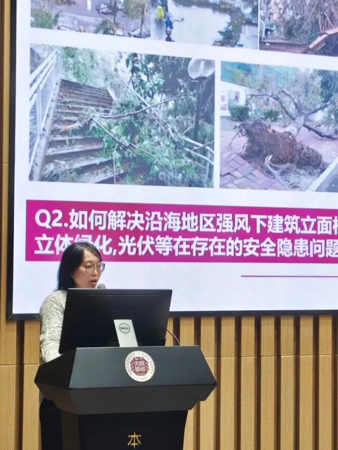崔冬瑾副教授带来了题为《安全导向的建筑立体绿化抗风特性与优化设计研究》的专题报告。报告中,她深入分析了建筑立面构件及立体绿化对城市风热环境的影响,并强调了在研究城市风环境时需充分考虑建筑立面元素以及热浮力对建筑风环境的影响,以提升对城市风环境的模拟精度。