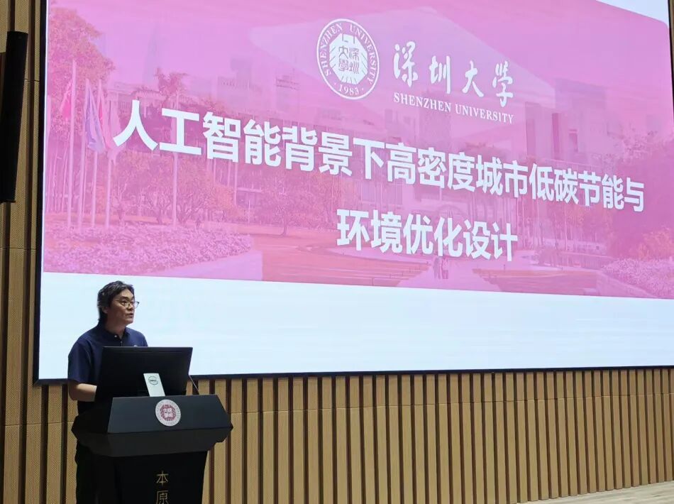 会议开始,深圳大学建筑与城市规划学院院长范悦特聘教授进行欢迎致辞。范院长表示随着全球城市化的加速推进,高密度城市面临着前所未有的挑战,其中包括能源消耗、环境污染和生态失衡等问题。 这些问题不仅关系到城市的可持续发展,更直接影响到每一位市民的生活质量。高校应共同探讨如何利用人工智能技术,推动高密度城市的低碳节能与环境优化设计,以实现更加绿色、智能、宜居的城市未来。