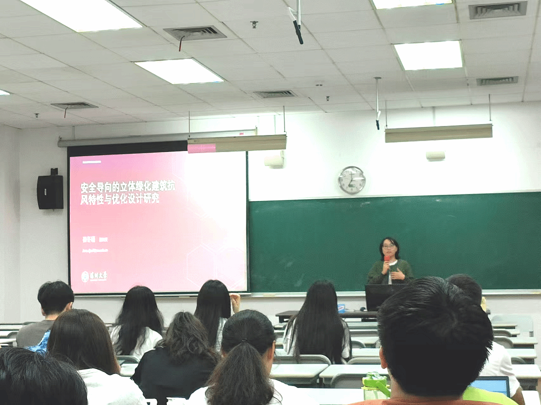 深圳大学建筑与城市规划学院2024年度绿色、健康建筑前沿课程系列讲座第六讲:“安全导向的立体绿化建筑抗风特性与优化设计研究”于11月6日晚由崔冬瑾副教授主讲,讲座顺利举行。