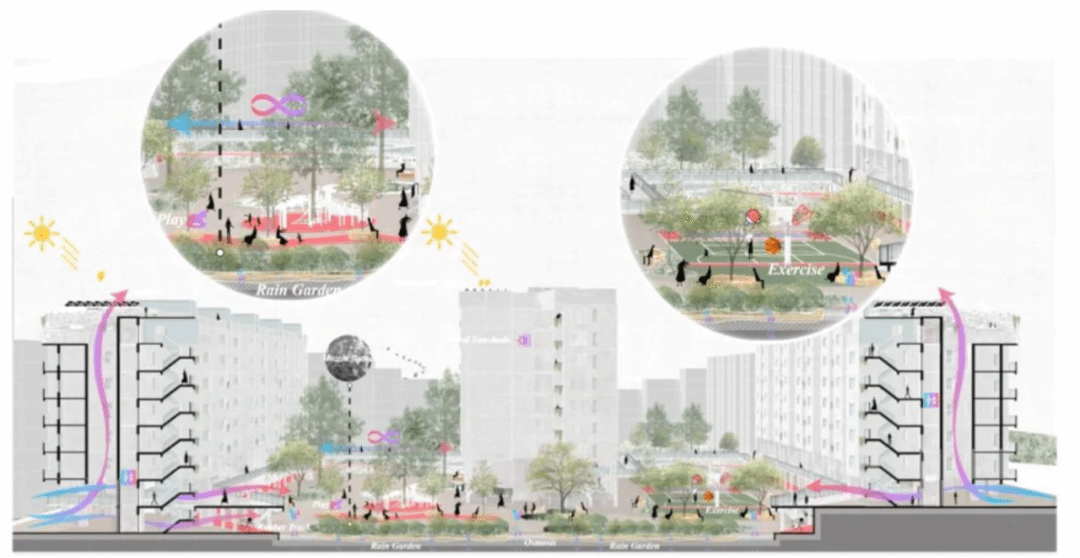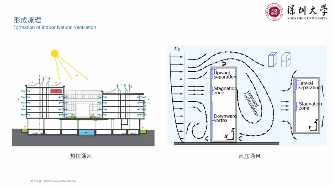 本次讲座,崔老师通过若干绿色城市空间设计案例引入主题,开始介绍如何营造一个舒适的风环境:首先要了解所处位置的局地气候信息,而后可通过建立城市风廊-风道系统、调整建筑单体形态和建筑的空间形态分布达到优化城市行人层风环境的目的,与此同时,可利用风压通风、热压通风的原理优化自然通风,为使用者提供更舒适的室内环境。