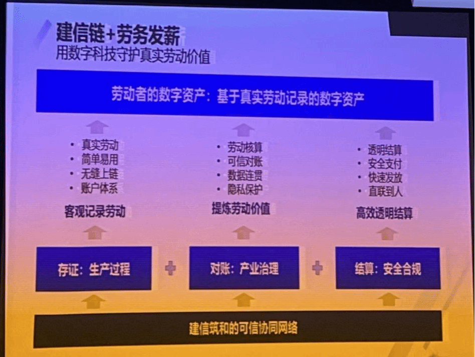 建信链+劳务发薪是一个先进的数字科技平台,通过区块链技术守护劳动者的真实劳动价值。该平台为劳动者创建基于真实劳动记录的数字资产,实现透明结算、简单易用、可信对账和安全支付。