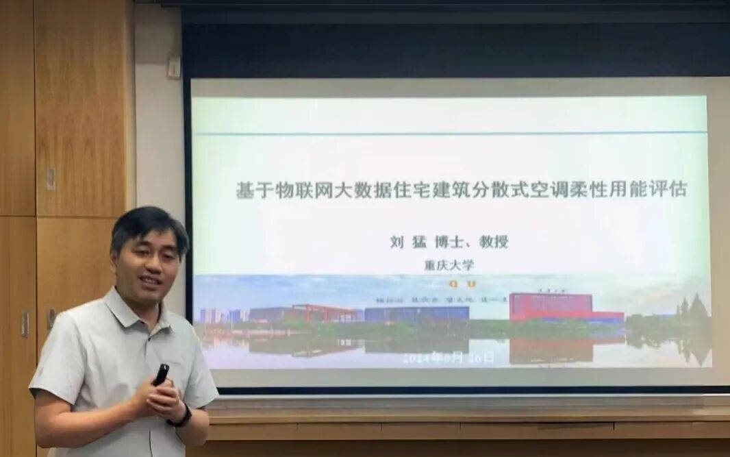 第二位特邀嘉宾是重庆大学本科生院院长、巴渝学者特聘教授、首批重庆英才创新创业领军人才刘猛教授。 刘教授带来了题为《基于物联网大数据的住宅建筑分散式空调柔性用能评估》的专题报告,从住宅建筑空调使用模式、空调柔性用能指标构建和居住区空调柔性用能分析三个方面,深入介绍了人工智能时代下建筑热环境营造的关键问题及最新研究进展。 刘教授详细介绍了空调原始数据预处理再到最终分析的全过程,针对原始大数据存在的数据量庞大、质量参差、具有时效性等难点,提出了解决方案,并在此基础上,建立了住宅动态热需求画像,进而创新性地提出一种基于用户热需求变化的柔性用能评价方法,应用于居住区空调柔性用能调控。
