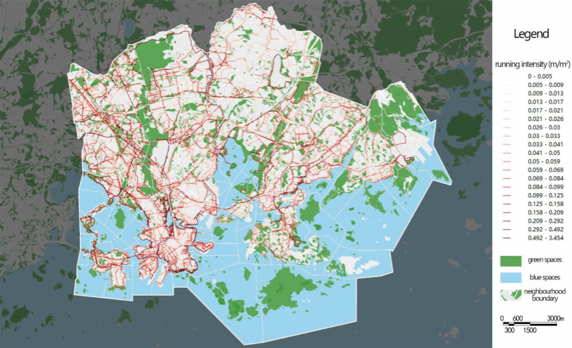缺乏运动锻炼是导致市民福祉和健康状况恶化的最重要因素之一。与步行和骑行相比,跑步活动与环境特征的关联研究相对较少。基于运动追踪软件收集的自发地理信息数据,我们建立了两级多水平模型来解决公众对跑步路线偏好的空间异质性问题。结果表明,街道绿化能更好地代表跑步者所接触到的绿化水平,是跑步行为的可靠预测因素。此外,更多的亲水空间和减少与其他交通使用者的互动也会促进跑步强度。其他建筑环境因素包括交通噪声、空气污染和交通事故也与跑步强度有明显的关联。自然暴露因素与城市跑步强度的关联因社会经济条件而异,如人口密度和收入水平。这表明规划者和政策制定者在采用景观战略促进体力活动时也应考虑到城市化指标。