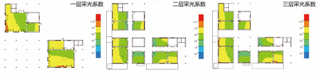 中庭的设置配合室内高反射比材料,提高室内照度和采光均匀度;