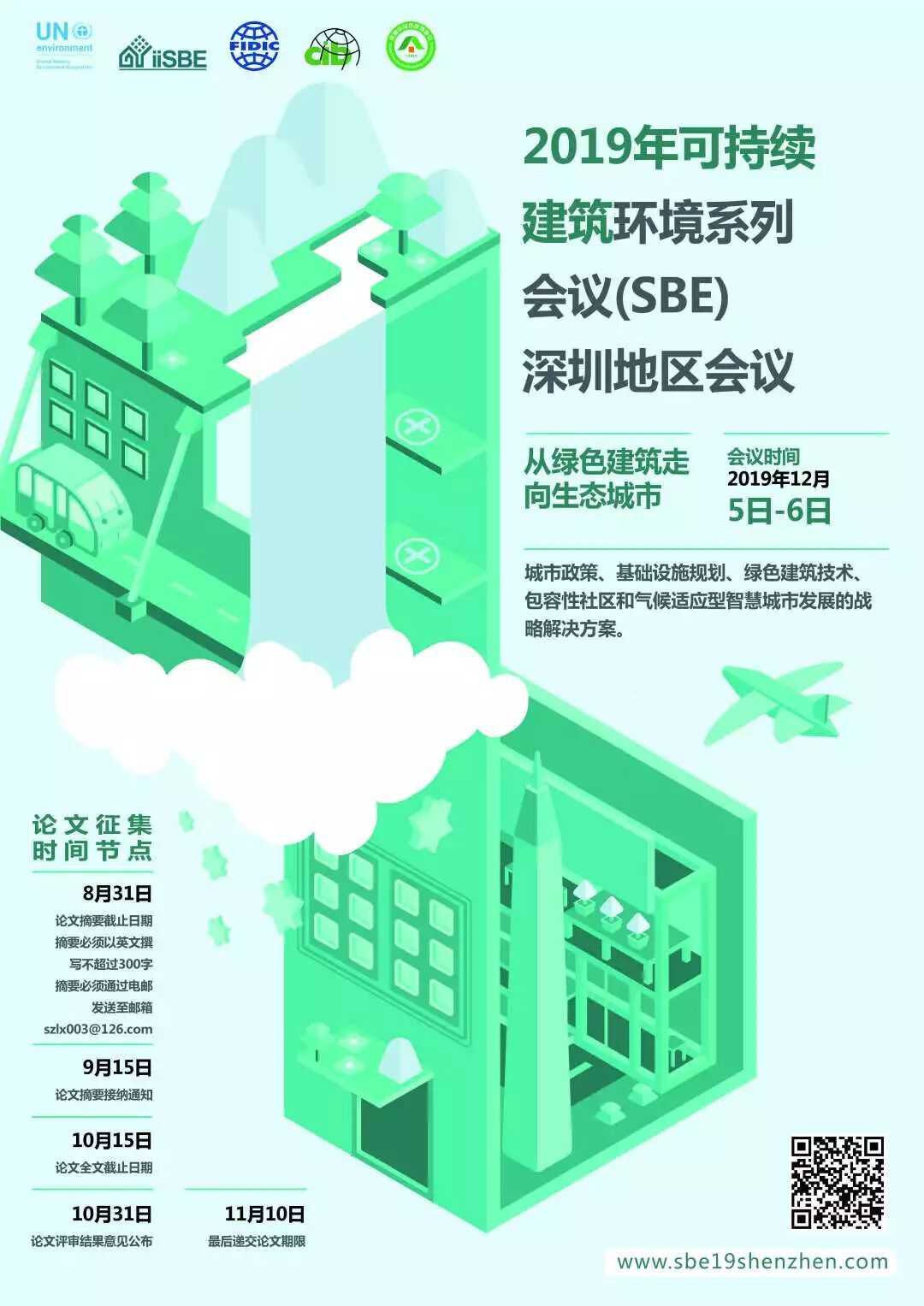由深圳市绿色建筑协会主办的“2019年可持续建筑环境系列会议(SBE)深圳地区会议”(以下简称SBE19 Shenzhen),将于2019年12月5-6日在深圳大学举办,并由建筑与城市规划学院承办。SBE19 Shenzhen会议主题为“从绿色建筑走向生态城市”。按照SBE地区会议的惯例,现面向全球征集会议论文。