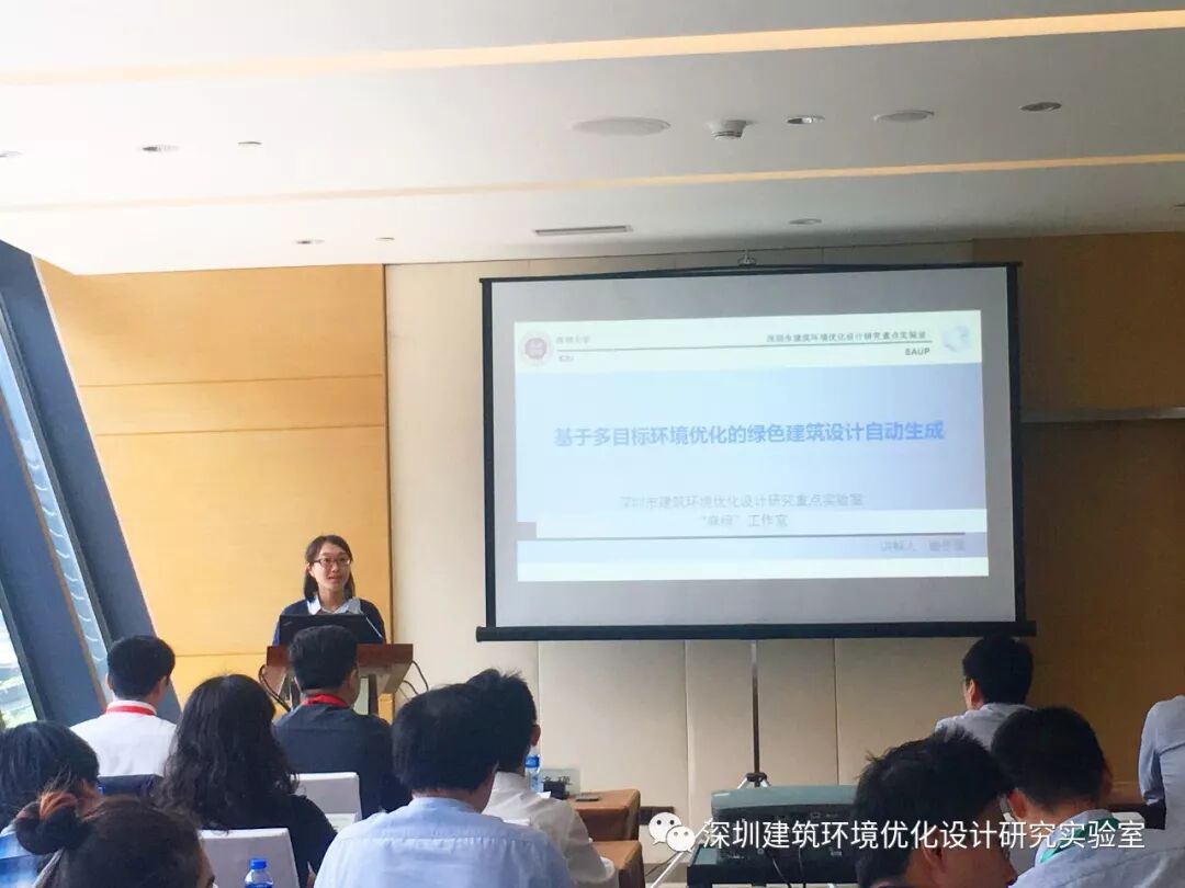 深圳市建筑环境优化设计研究重点实验室崔冬瑾博士在“青年委员论坛“专题论坛中作题为《基于多目标环境优化的绿色建筑设计自动生成》的主题报告。报告基于实验室数字化设计与绿色建筑新发展的理念,汇报了近期基于grasshopper平台进行基于多目标环境优化的建筑总平面布置、体块及构件自动生成的工作成果。