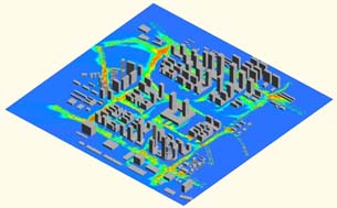 规划区行人层风环境及交通污染物研究 道路交通污染物实测及模拟MOVES模型计算将道路进行路段划分,划分成90个路段进行模拟,模拟结果为各路段内机动车小时排放总量。 建成环境风环境数值模拟模拟中应建立建筑物、构筑物以及地形地貌的体量模型。考虑大范围扰流建筑区域。 重点区域网格局部加密。 污染物扩散模拟CFD 数值计算。基于风场结果添加污染物,用拉格朗日算法确定污染物扩散及浓度分布。 建成环境优化设计,以行人层风舒适,及污染物暴露量为导向依据,优化指导城市建筑布局,道路慢行系统环境优化。 室内自然通风污染物传播研究,同时预测污染物室内外传播扩散,对建筑室内环境,围护结构优化设计保证自然通风下良好的空气品质。