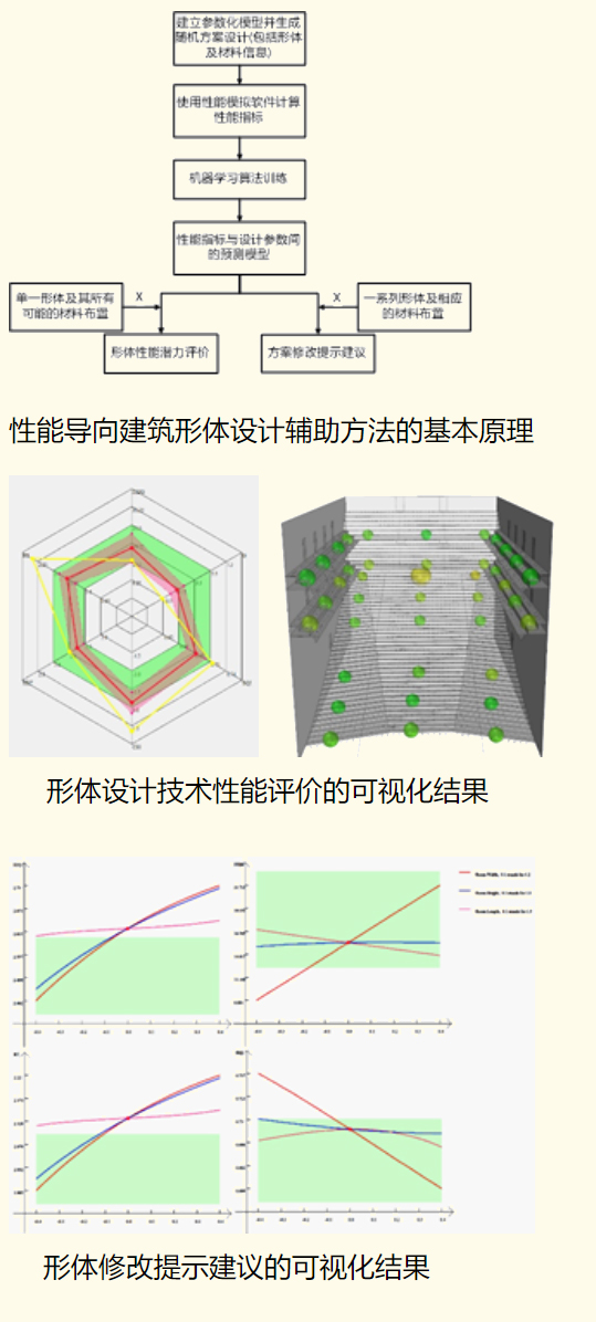 随着人们对舒适健康生活品质的深入关注以及能源与环境形势的日益严峻,追求良好的技术性能已成为建筑设计的重要目标。研究表明,作为建筑设计起点的形体设计不仅对建筑的美学效果起决定性作用,对能耗、采光、通风等技术性能也具有重要影响。因此,建筑师在早期设计阶段进行建筑形体创作时必须将技术性能纳入考虑,不能仅依赖后期深化设计或设备系统。 然而,建筑的形体设计过程具有设计信息不完整(仅确定形体信息而缺乏材料、构造、设备等信息)、变动频繁(设计需要反复修改推敲)、多目标性(需兼顾功能、性能、美学等多重设计目标)等特点,使建筑师在形体创作时考虑技术性能具有较大难度、急需有效的形体技术性能评价与设计辅助方法。 针对这一问题,本研究结合机器学习、蒙特卡洛模拟、最优化等数字技术,提出了一套性能导向的建筑形体设计辅助方法。该方法能够为建筑形体设计提供实时且独立于材料布置的技术性能评价与修改建议,解决了设计信息不完整、变动频繁等建筑形体设计的难点,从而有效辅助建筑师在建筑形体设计的过程中追求更好的技术性能。 在设计方法的基础上,本研究以音乐厅为例、开发了音质性能导向的形体设计辅助工具雏形,具体实现了技术性能评价、修改提示建议、可行范围分析、影响因子提取等功能,从而证明了所提出设计方法的有效性和可行性。 |